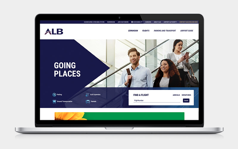 The airport’s website was functional, but dated and not optimally organized. We overhauled the site to make it simple to navigate, streamlined the content, and added strong visual elements, helping ALB tell the story of its passenger-friendly experience, business-friendly convenience, and role as a gateway to the Capital Region and the Northeast.