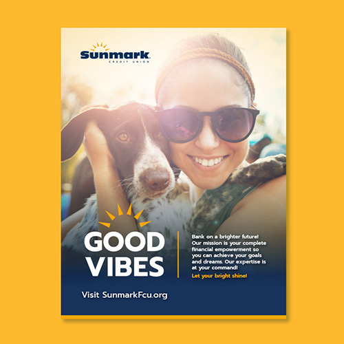 Sunmark Credit Union wanted to rebrand in order to embrace smart technologies and showcase the benefits of their personalized member services. Sunmark needed their unique personality to shine through their brand. Vibrant used a client-centered process to help Sunmark develop a brand identity full of energy and optimism on and off-line, and provides creative direction for all of Sunmark’s marketing needs.